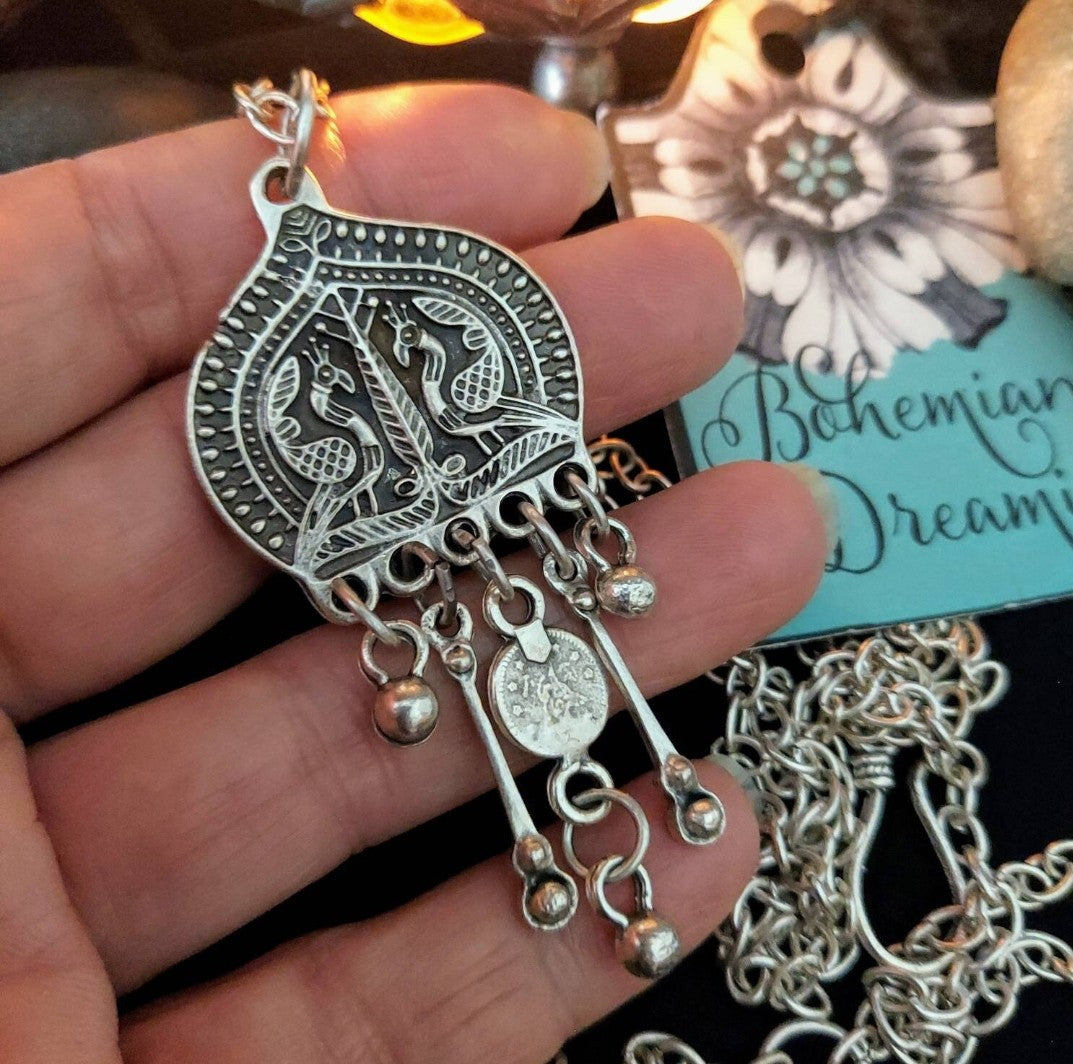 Beautiful Double Peacock Pendant has that perfect Bohemian Tribal Vibe!